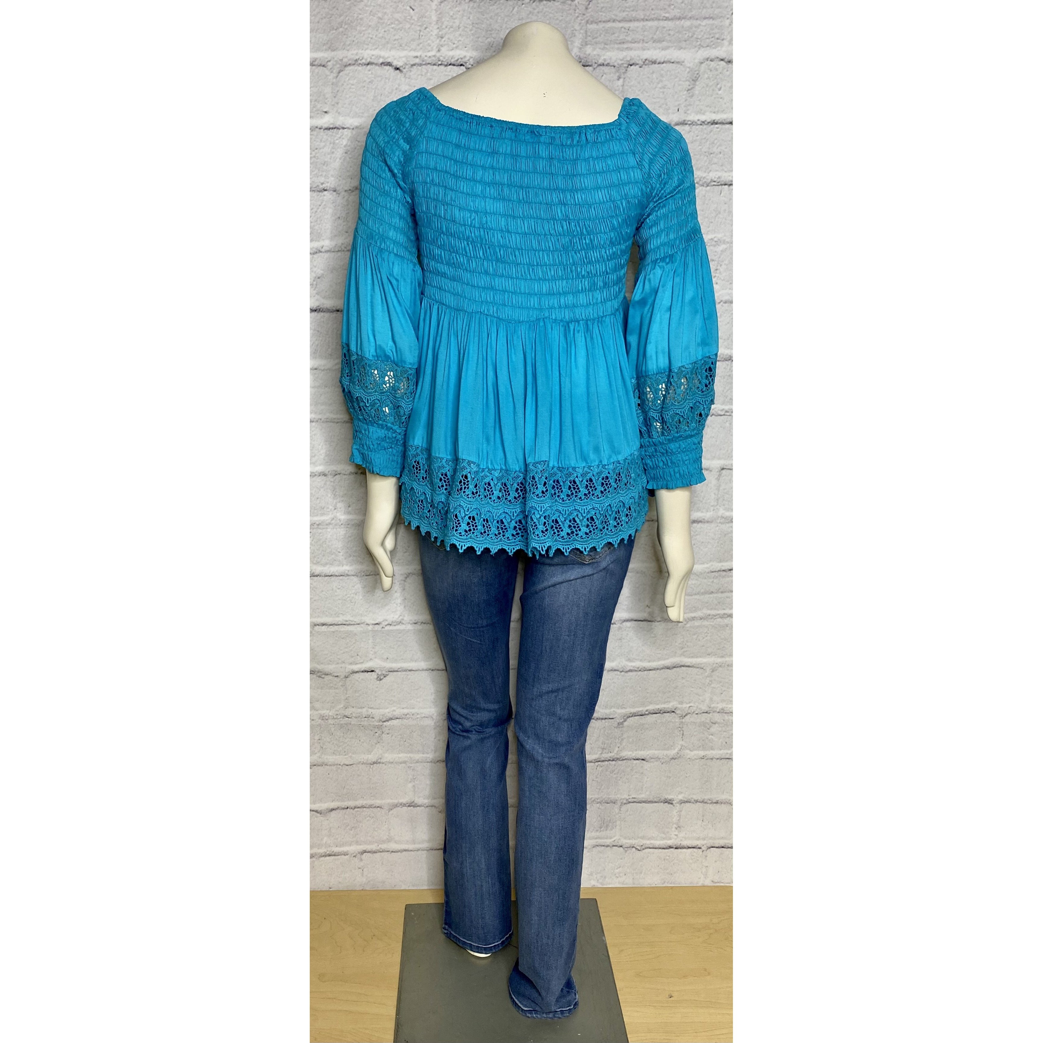 Teal Lace Peasant Blouse